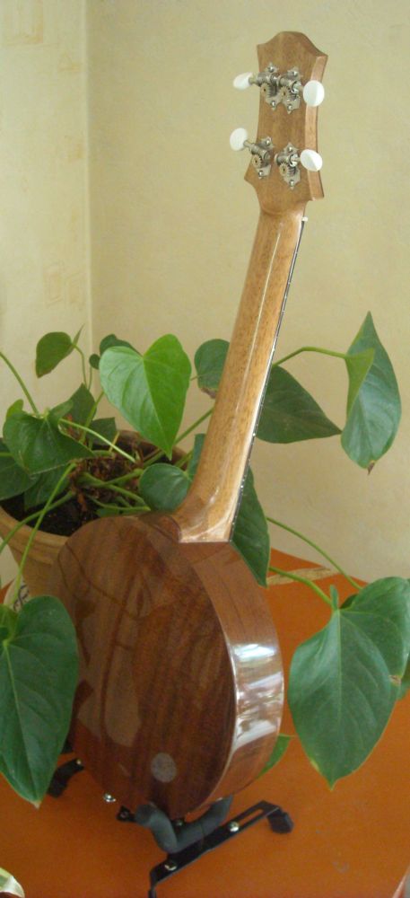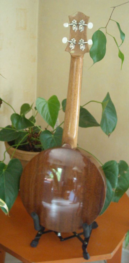 Je possédais depuis longtemps un banjo-mandoline 4 cordes doublées, dont le manche était vrillé, des mécaniques trop usées, bref un instrument qui n'était plus possible d'utiliser correctement.