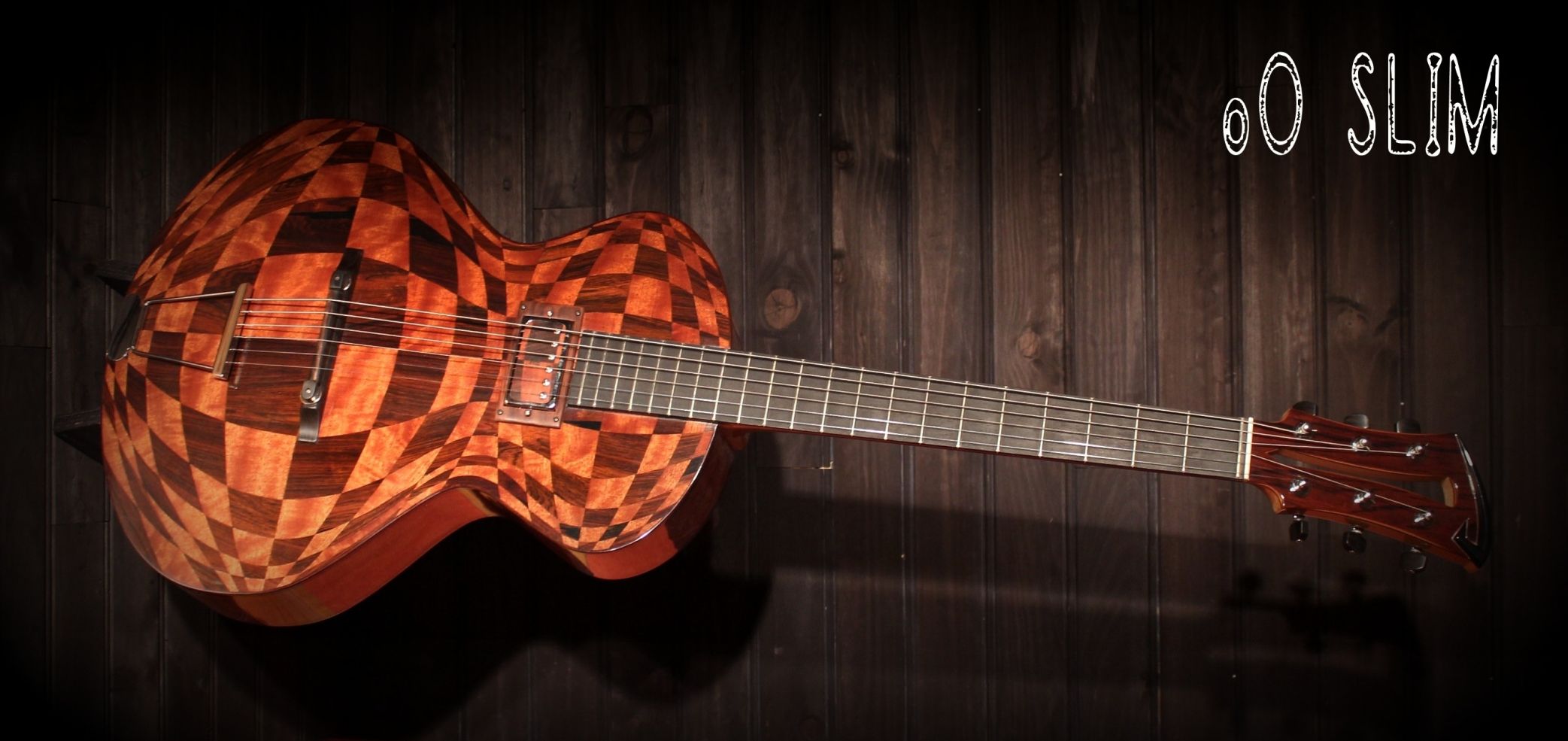 Modèle « oO Slim » (n°33-H04) Situation: Disponible à l'atelier Type/forme: Création du luthier Date de fabrication: Octobre 2013 Prix total: 8100€ (Hors étui)